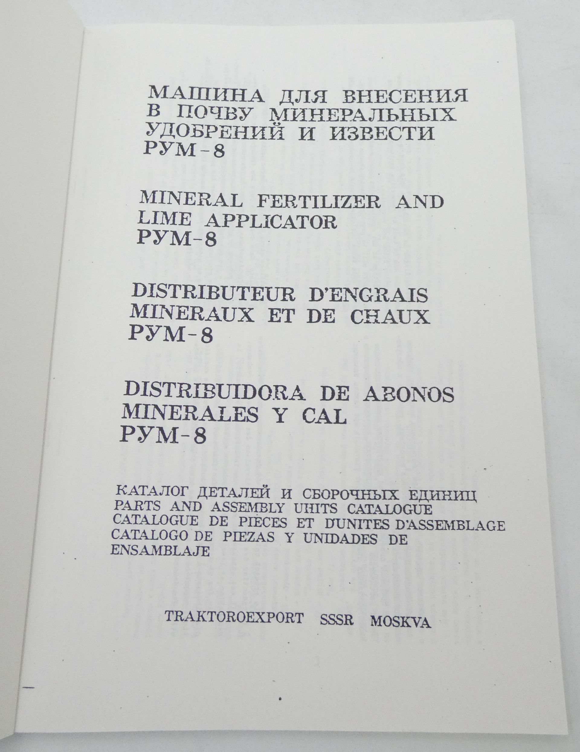 Belarus mineral fertilizer and lyme applicator PYM-8 parts and assembly units catalogue.