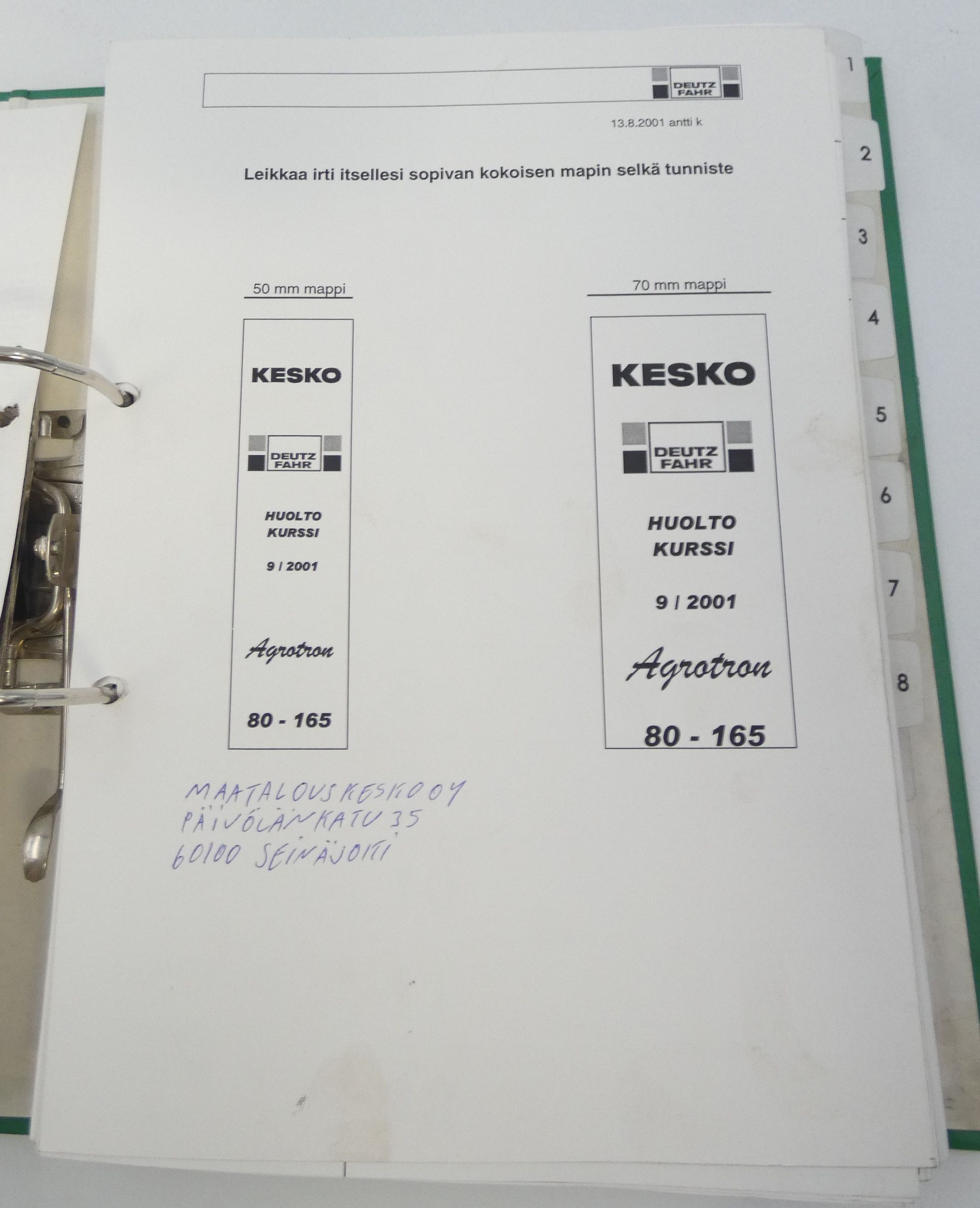 Deutz-Fahr 80-165 -traktoreiden huoltokurssimappi.