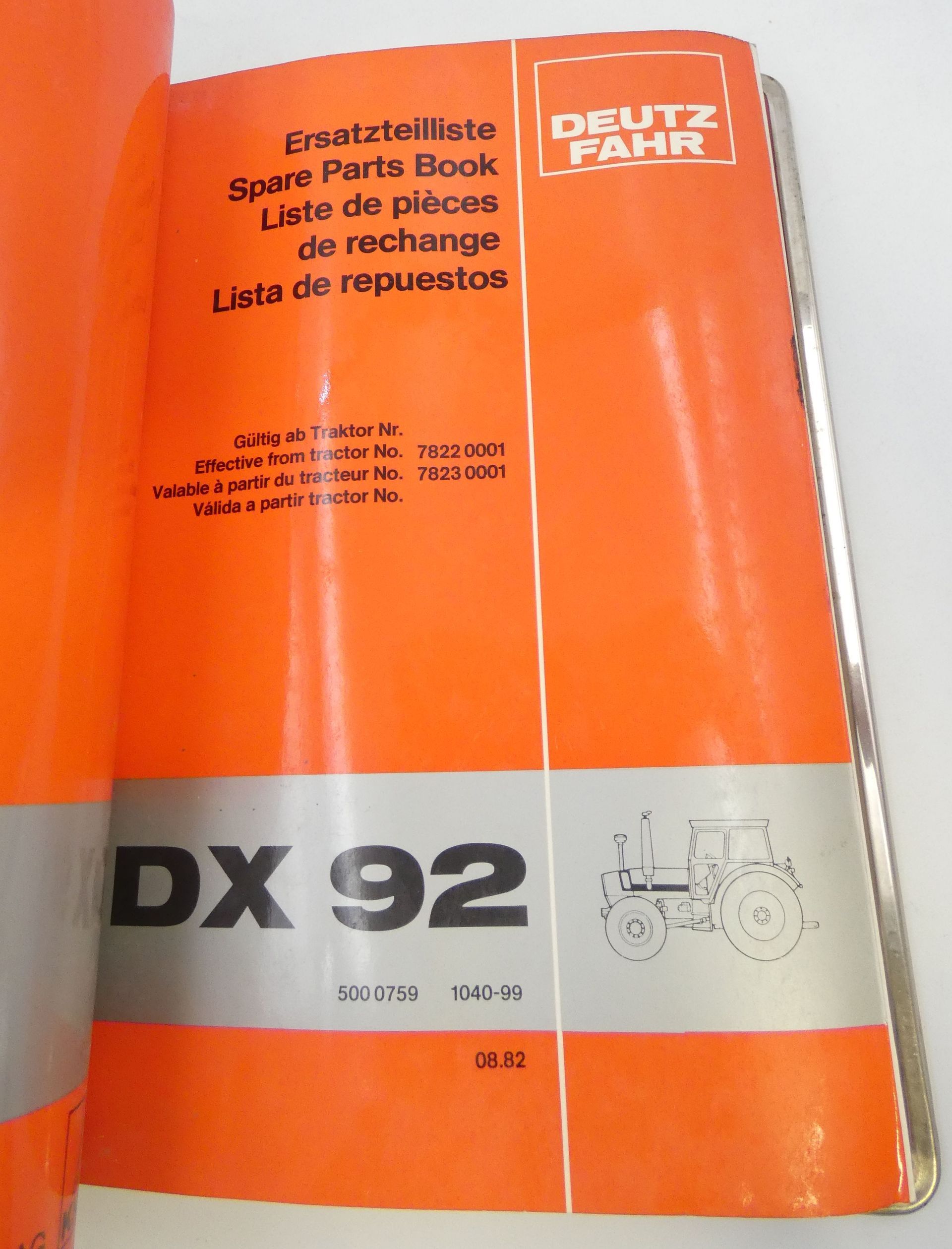 Deutz-Fahr DX80, DX92 spare part book
