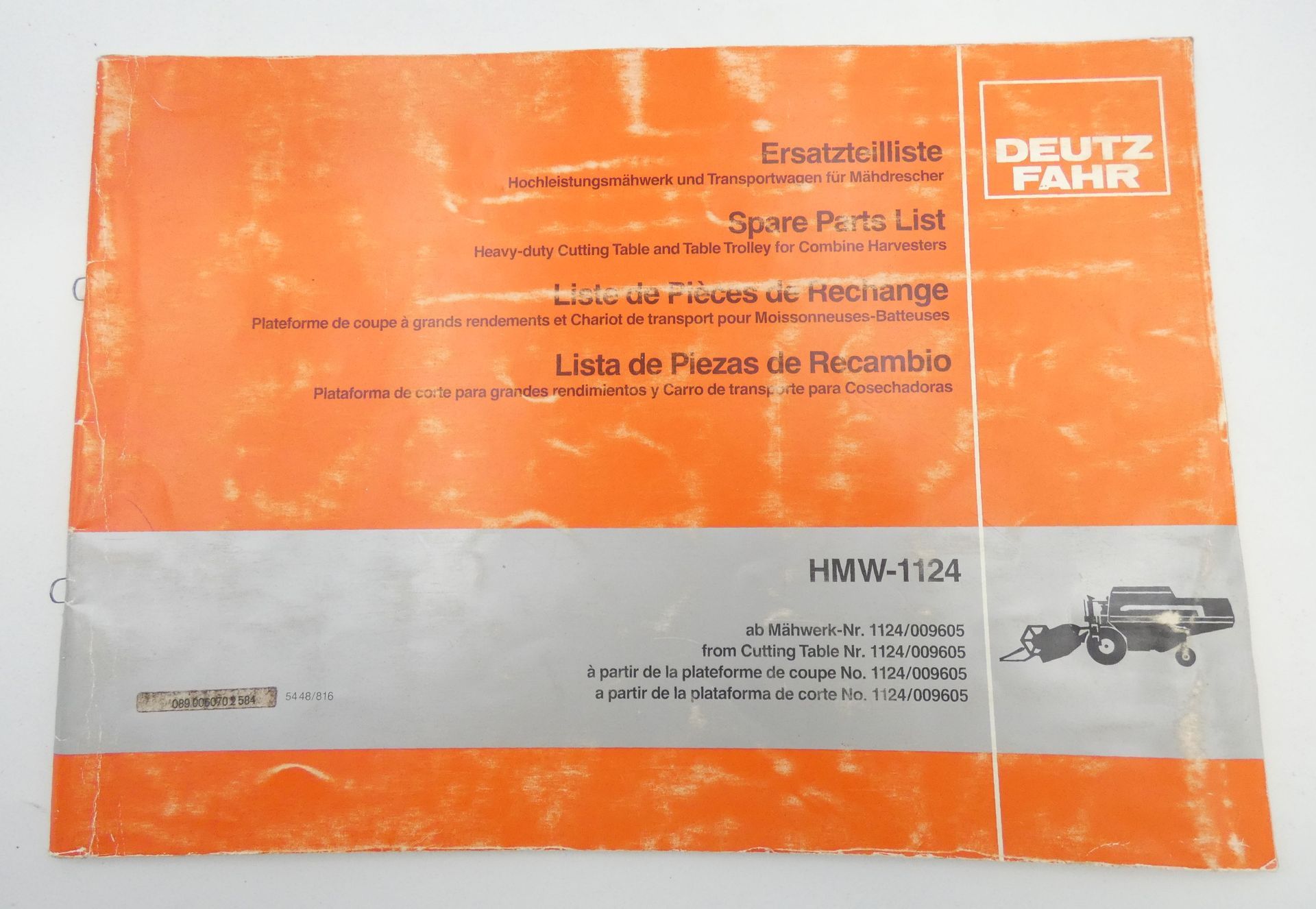 Deutz-Fahr HMW-1124 combine harvester spare parts list.