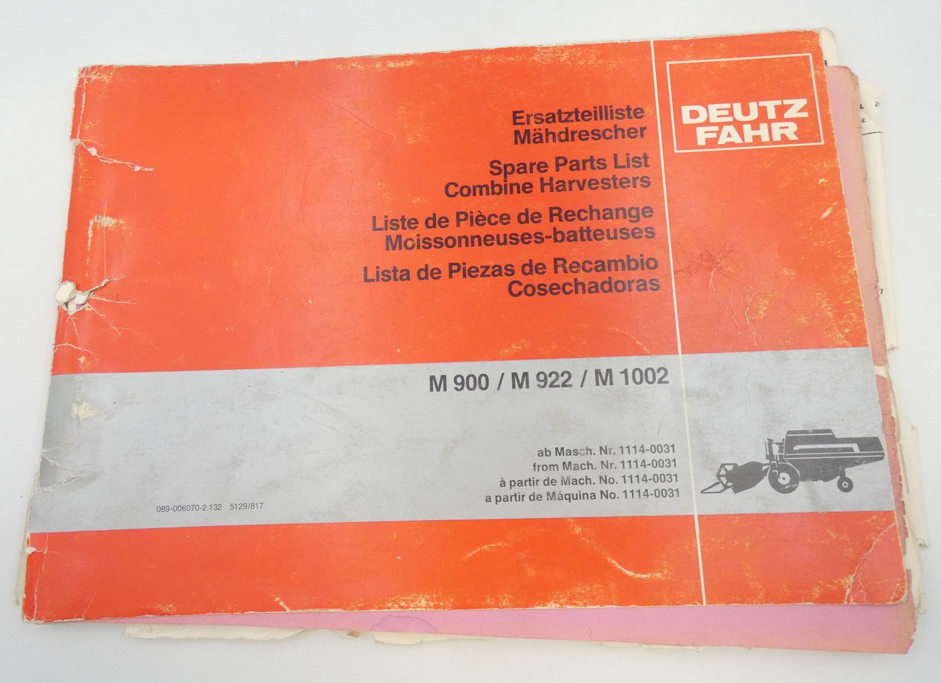 Deutz-Fahr M900, M922, M1002 combine harvesters spare parts list