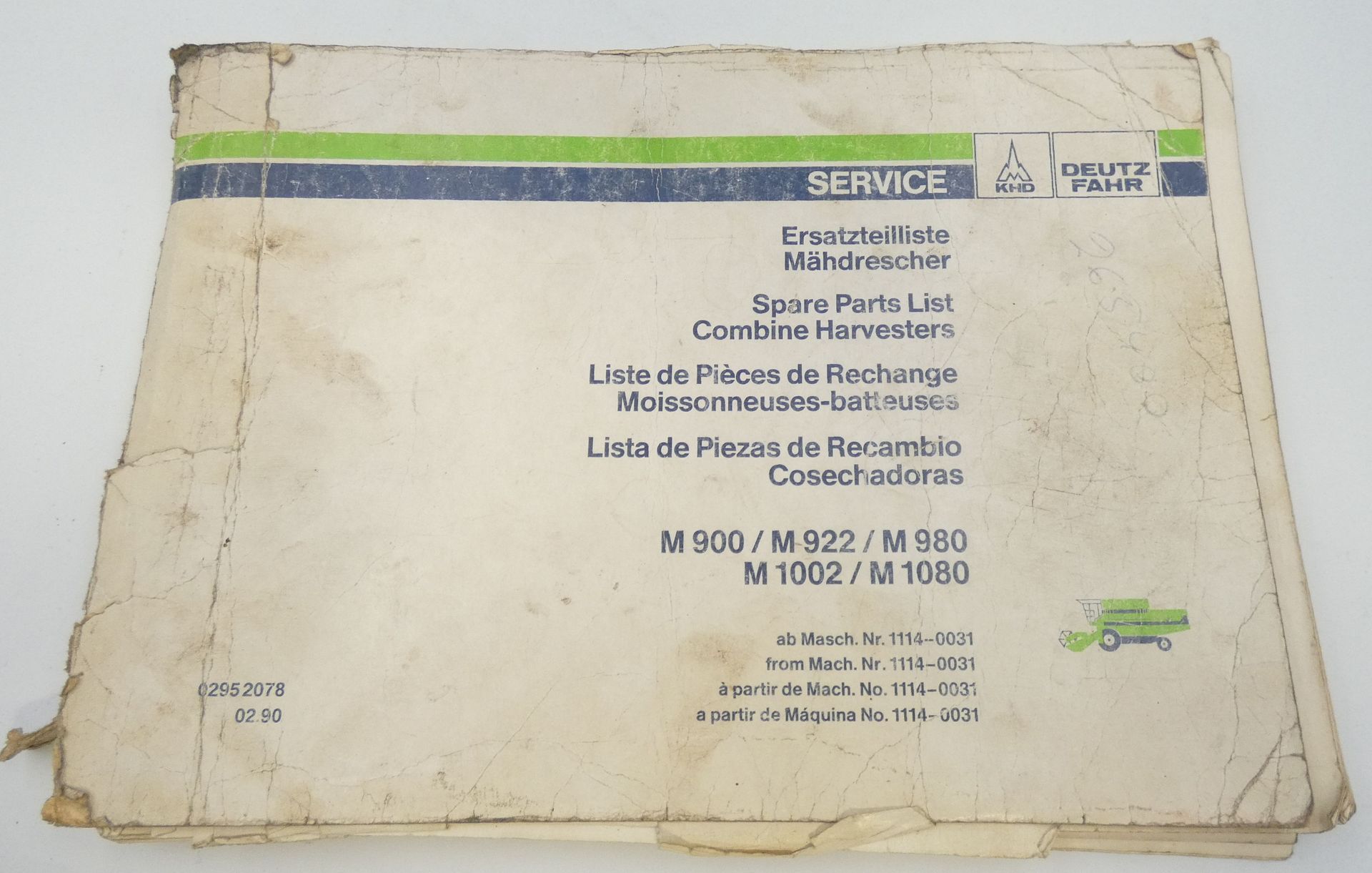 Deutz-Fahr M900, M922, M980, M1002 and M1080 -combine harvesters' spare parts list.
