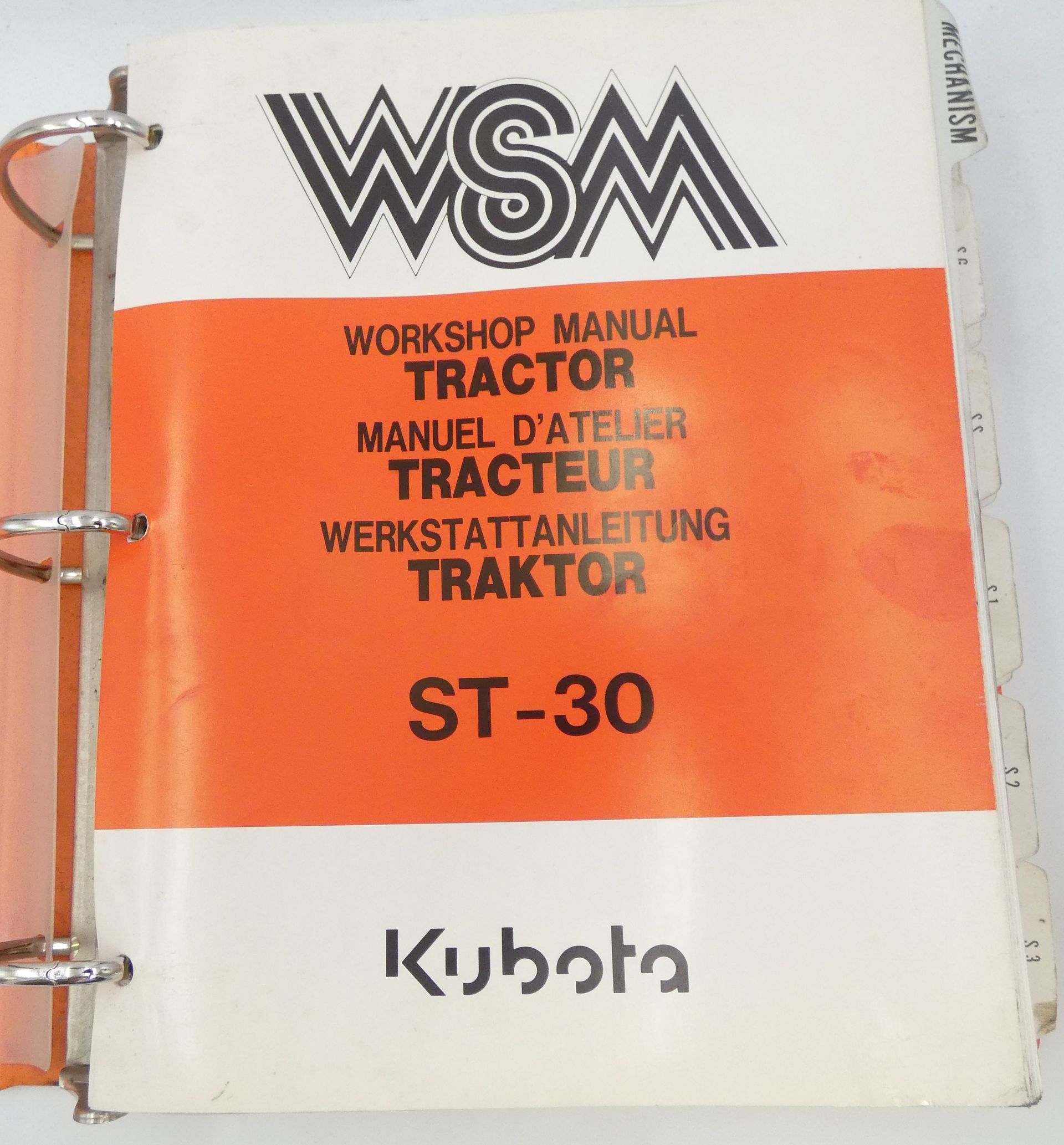 Kubota ST30 -traktorin korjaamokäsikirja -mappi.