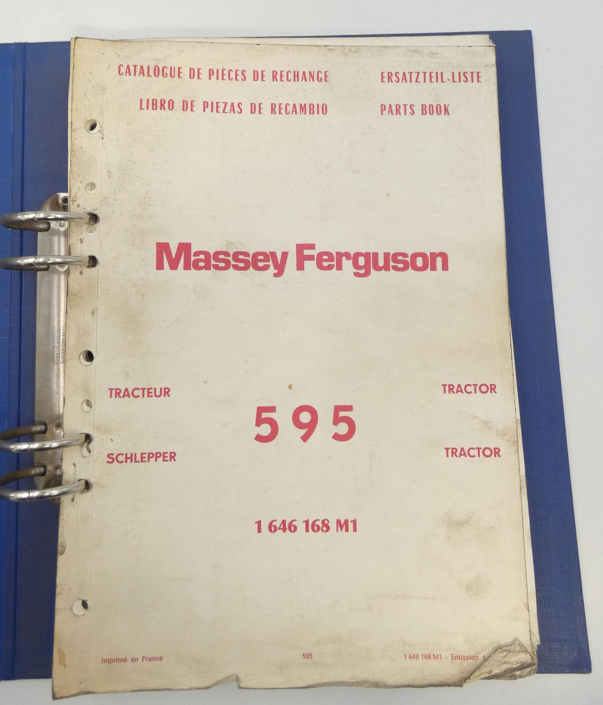 Massey-Ferguson 595 -traktorin varaosakirja -mappi.