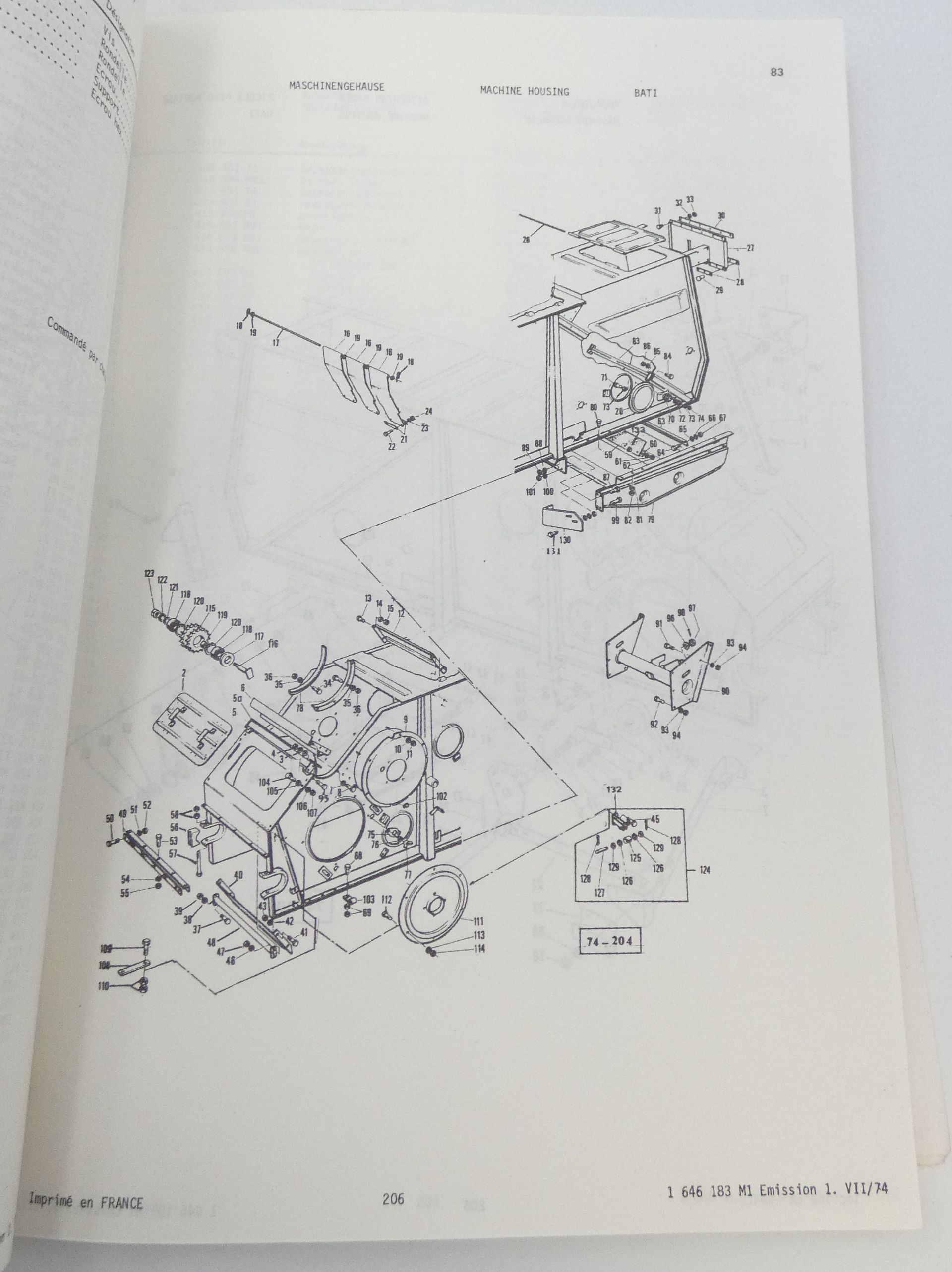 Massey Ferguson MF206 -leikkuupuimurin varaosakirja.