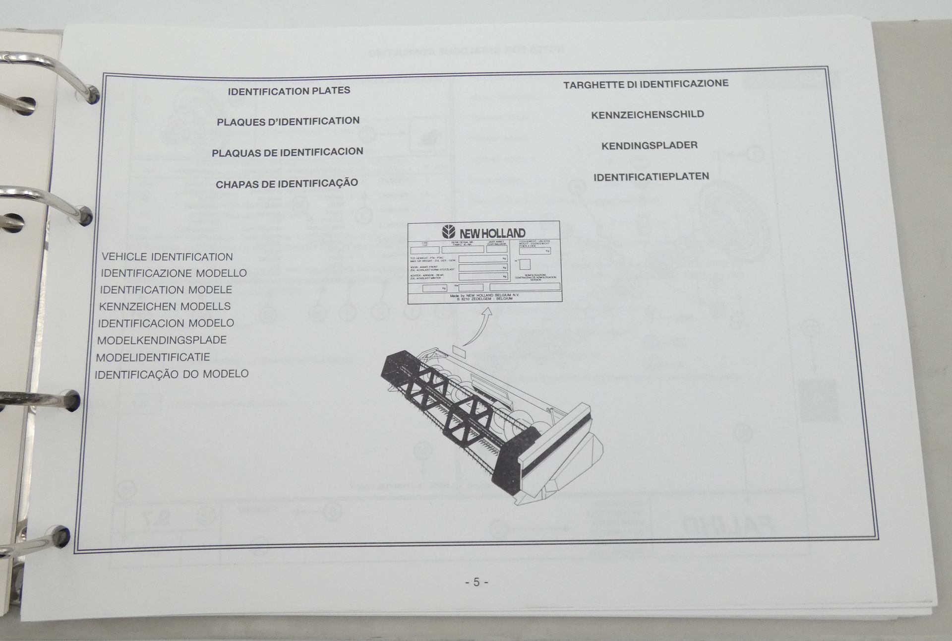 New Holland face lift header service parts catalogue