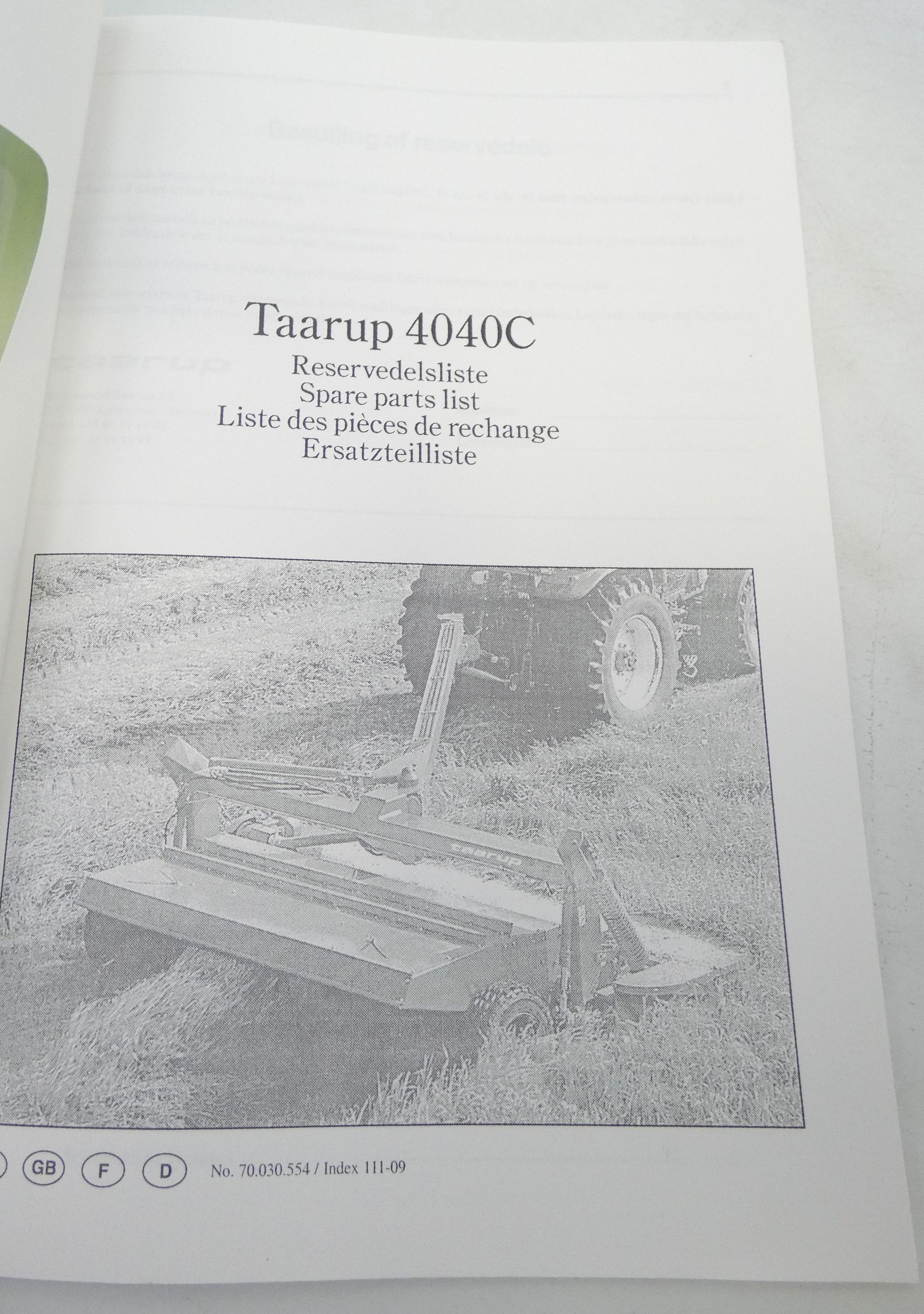 Taarup 4040C -niittomurskaimen varaosakirja.