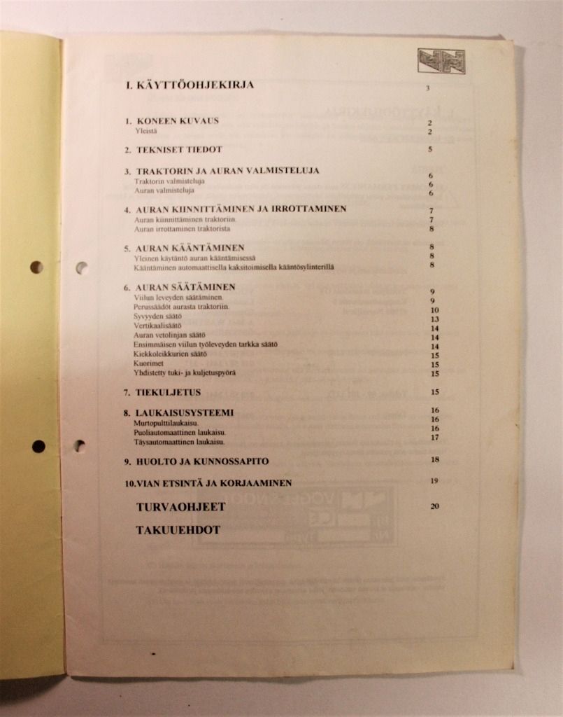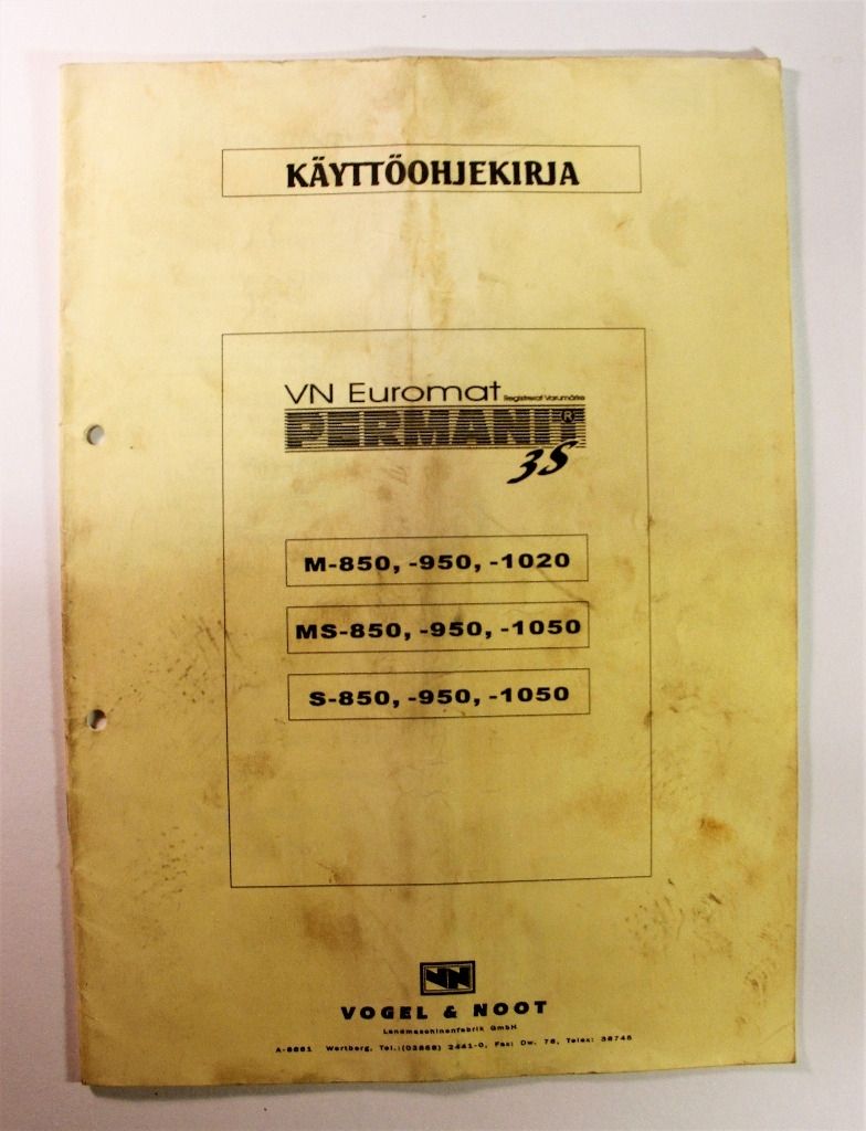 Vogel Noot VN Euromat Permanit 3S Kyntöauran käyttöohje