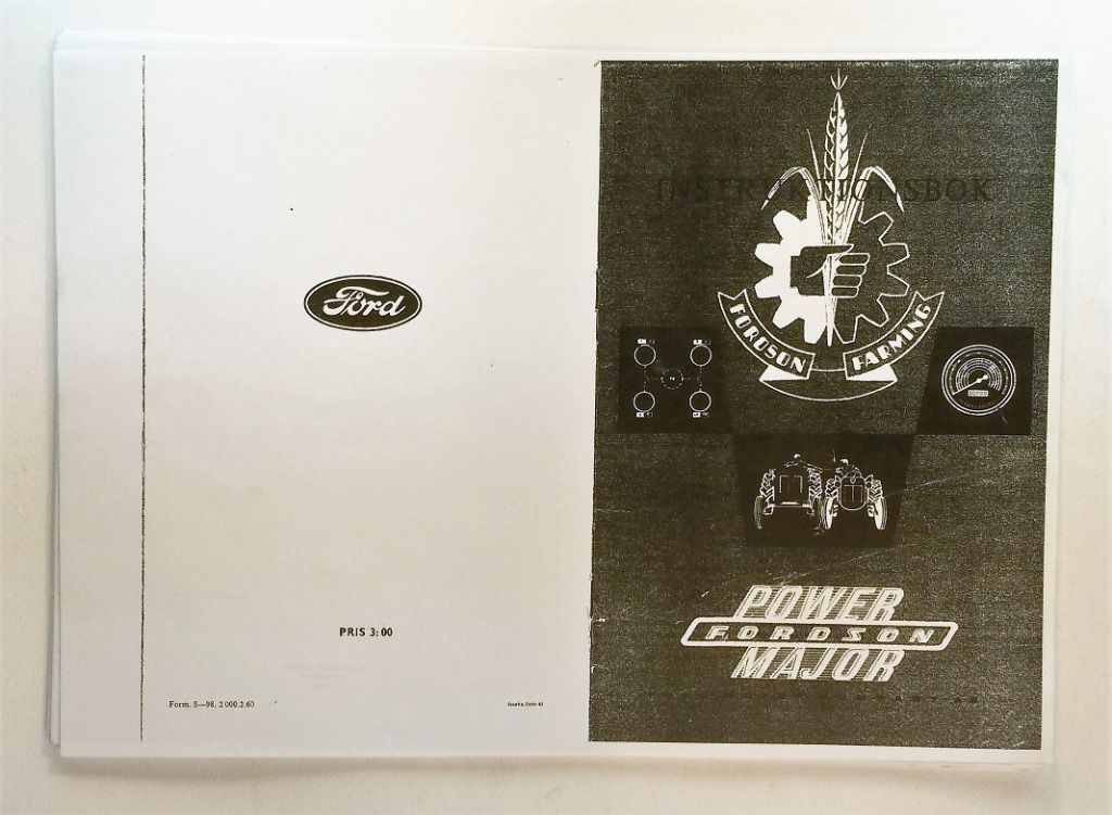 Fordson Major Power -traktorin ruotsinkielinen ohjekirja: "Instruktionsbok".