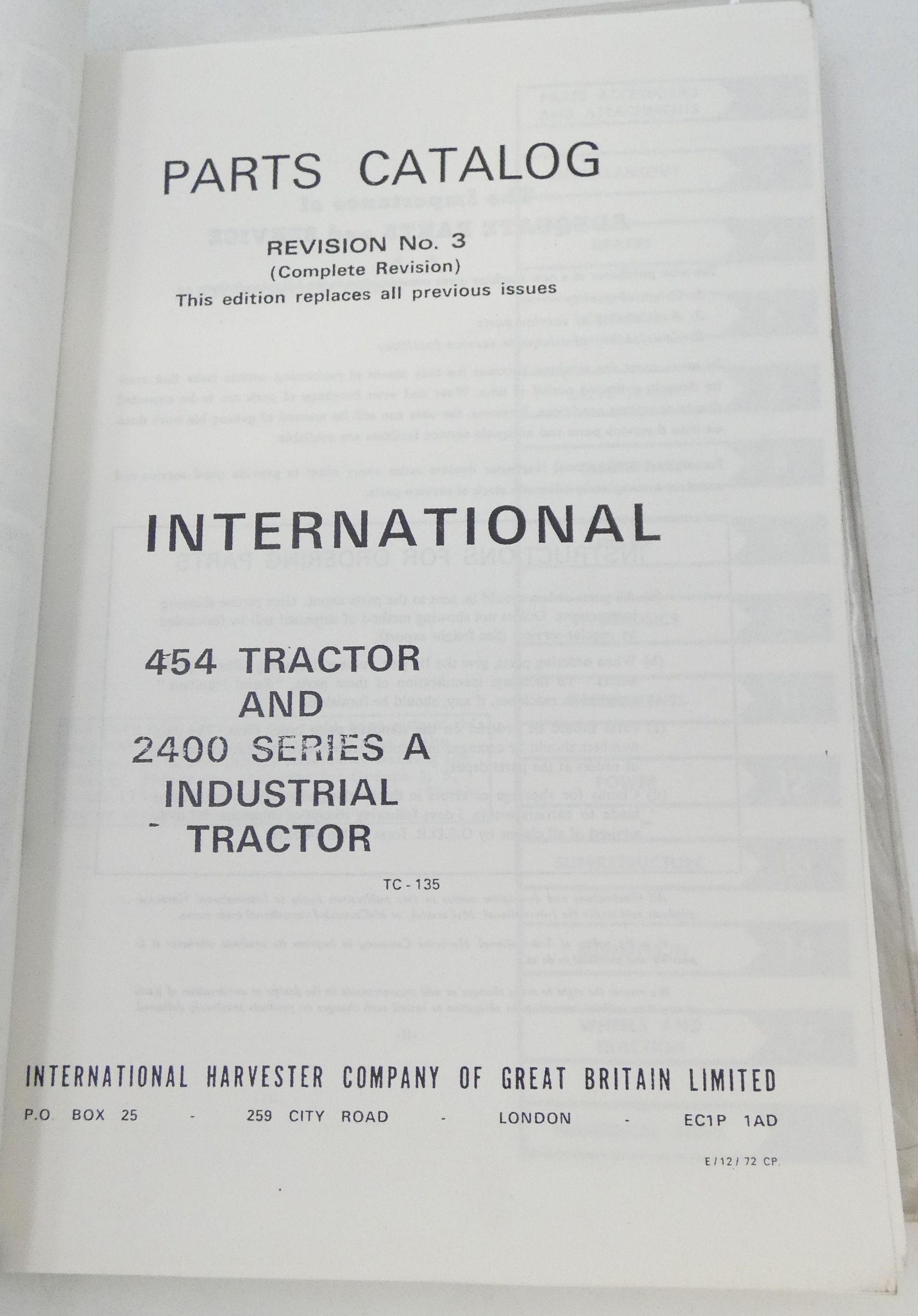 International 454 tractor and 2500 series A industrial tractor parts catalog.