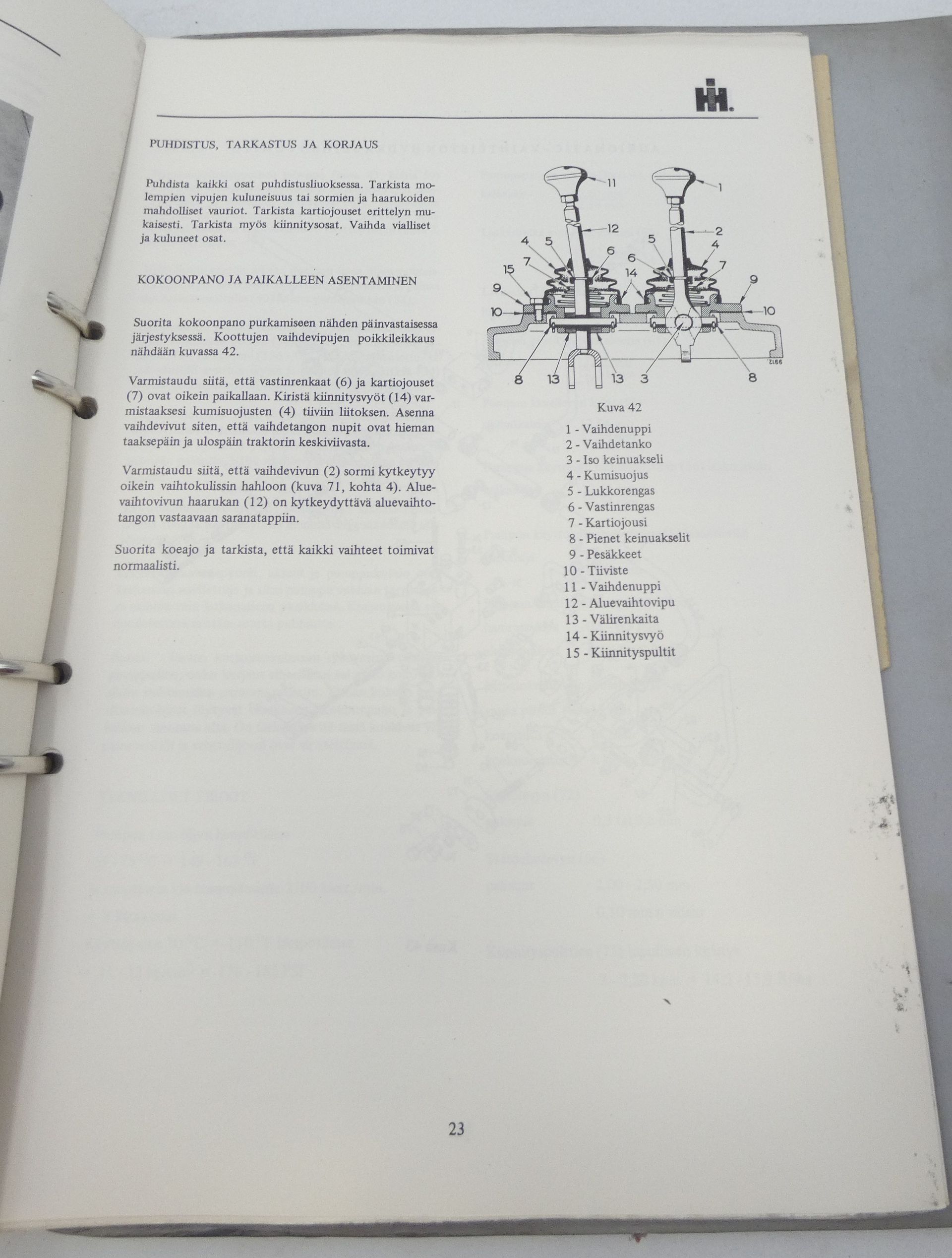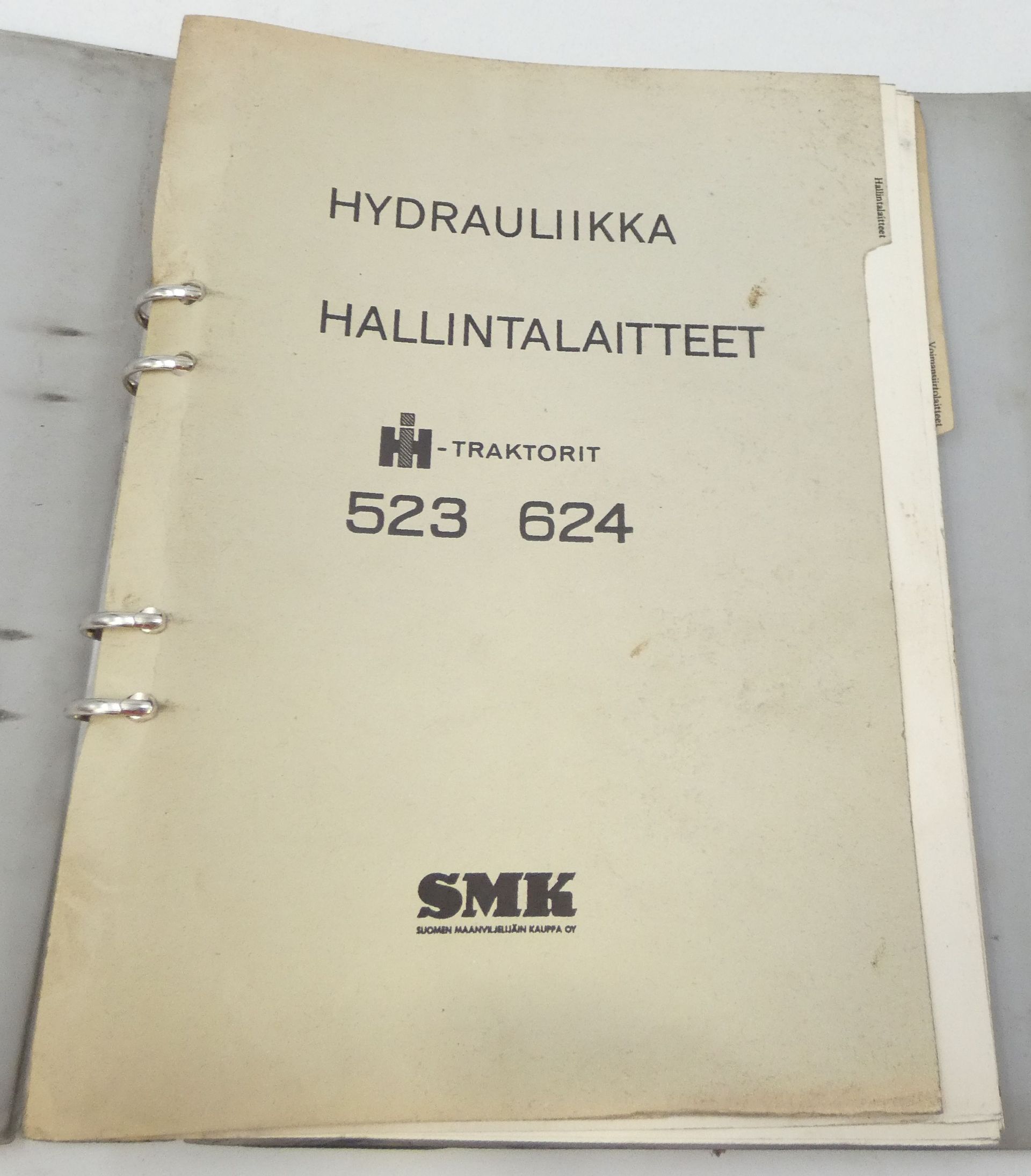 International 523 ja 624 -traktoreiden hydrauliikkajärjestelmien hallintalaitteiden ohjekirja.