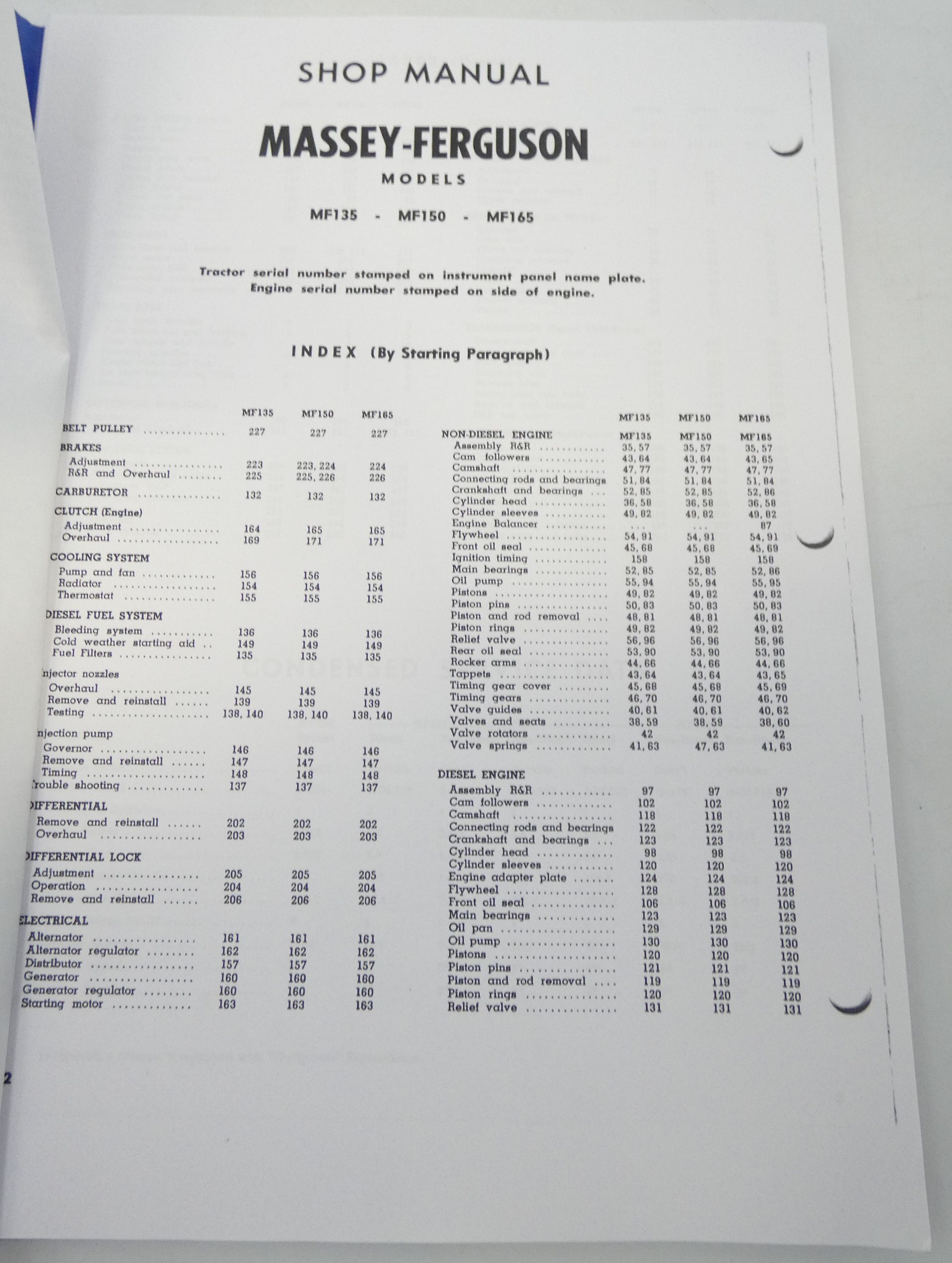 Massey-Ferguson models MF135, MF150, MF165 shop manual