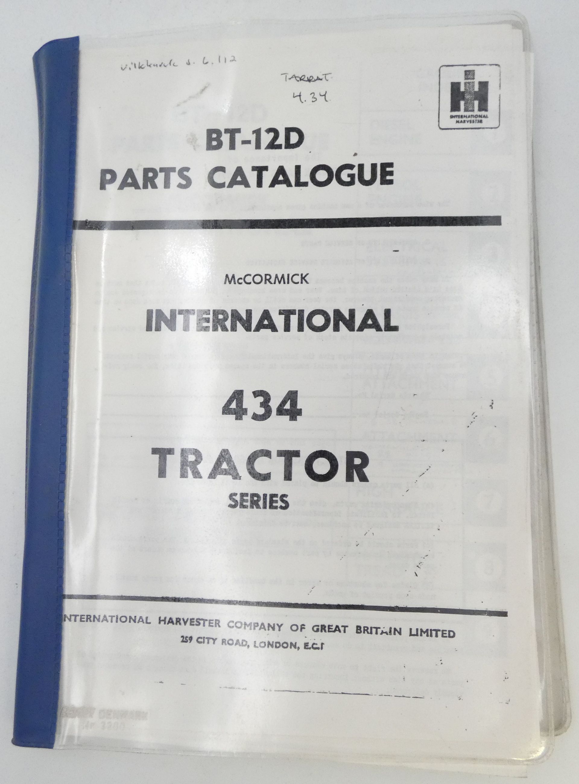 McCormick International 434 tractor series parts catalogue.