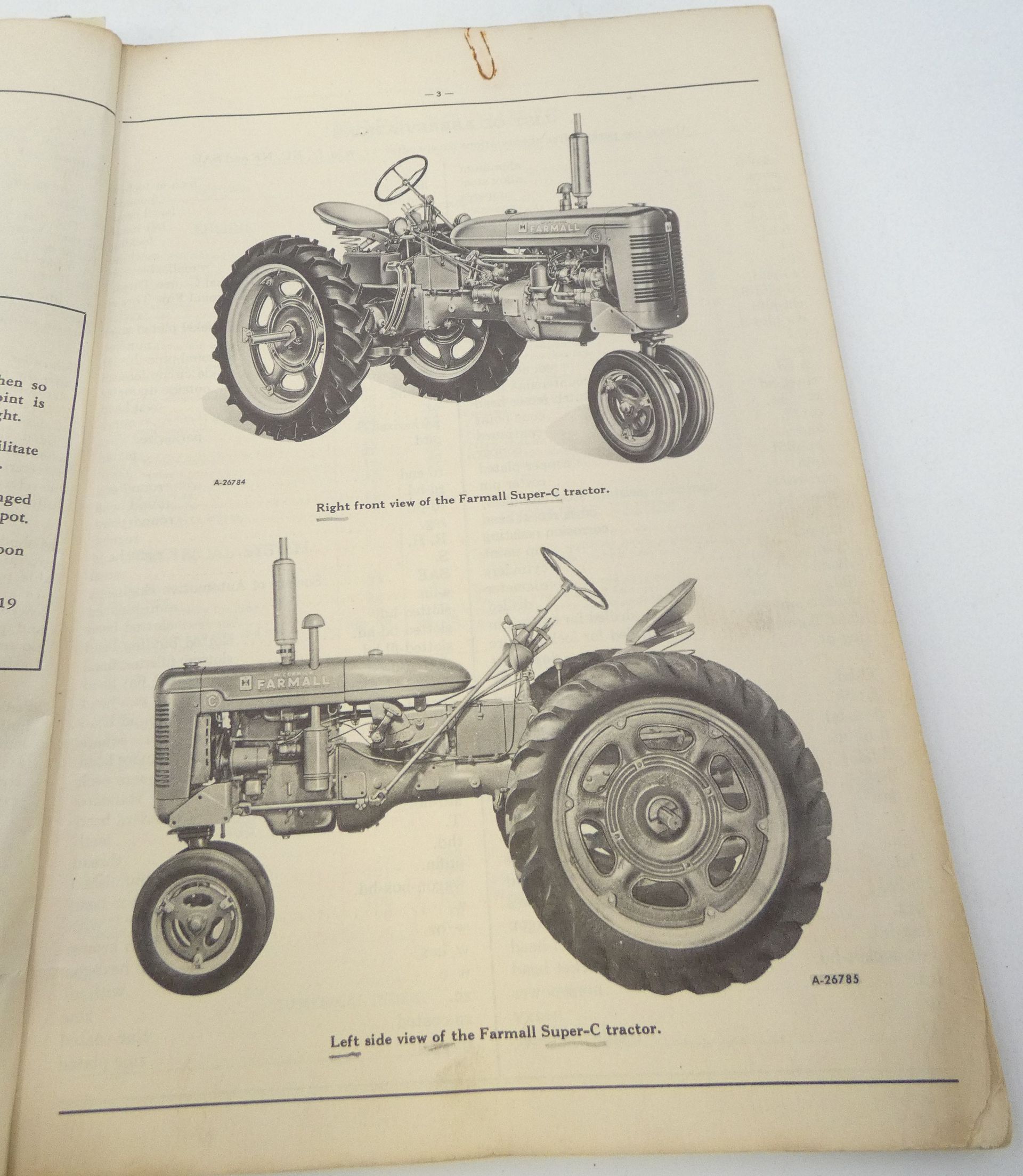 McCormick international Farmall super C tractor spare parts catalogue.