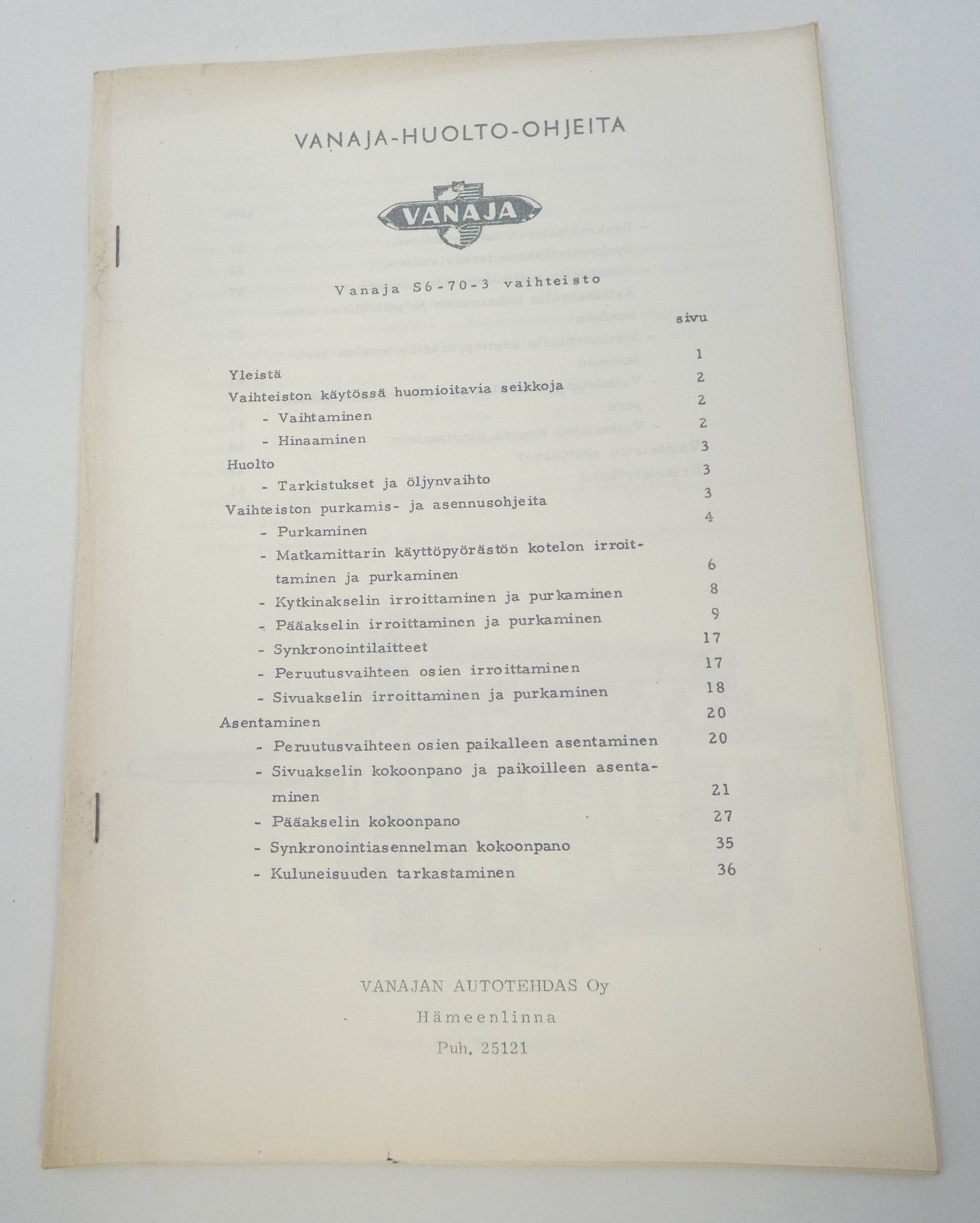 Vanaja 56-70-3 -vaihteiston huolto-ohjekirja.